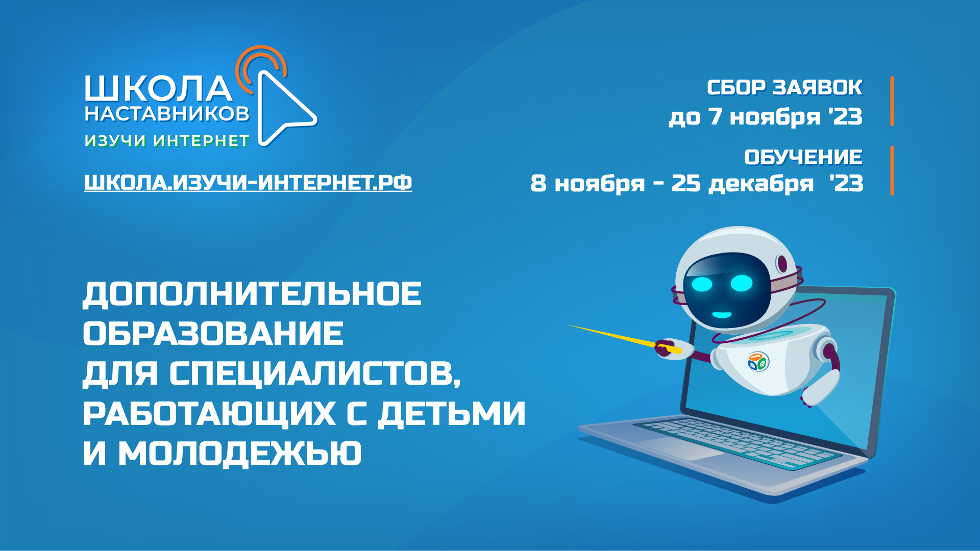10 октября открылся прием заявок на обучение в первой Школе наставников «Изучи интернет». Это дополнительная профессиональная программа повышения квалификации для педагогов, студентов и аспирантов педагогического профиля, а также других специалистов, работающих с детьми и молодежью.